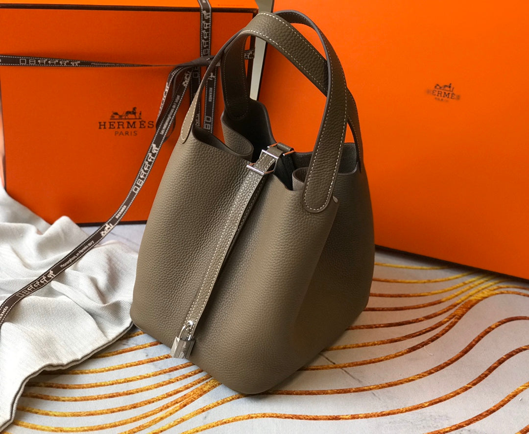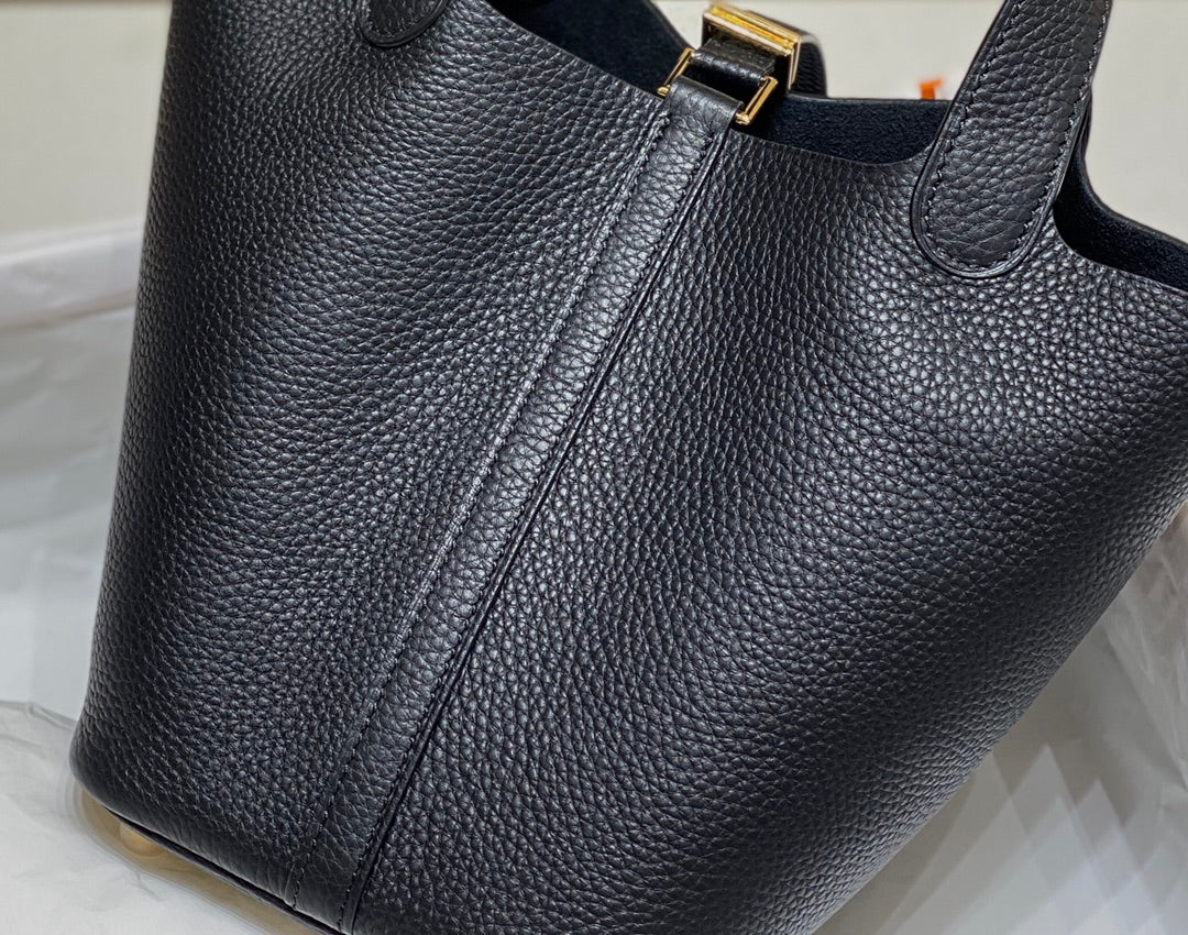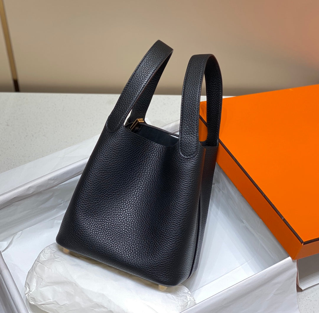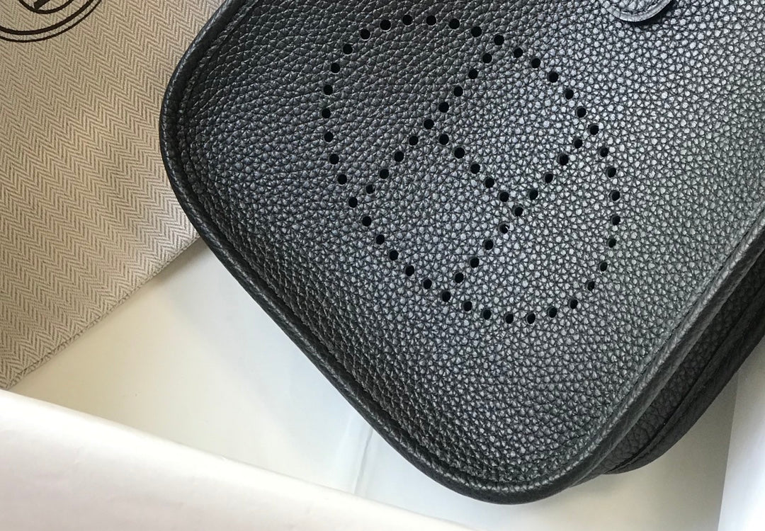 HM Pegase Pop Herbag Zip 31 White Blue Canvas Black Cowhide Leather
