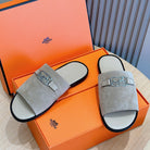 HM SILVER BUCKLE SLIPPERS LIGHT GRAY SUEDE
