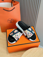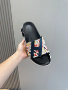 HM SLIPPERS BLACK AND WHITE MONOGRAM CANVAS