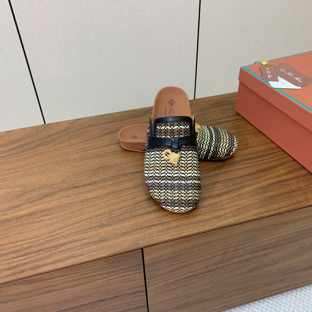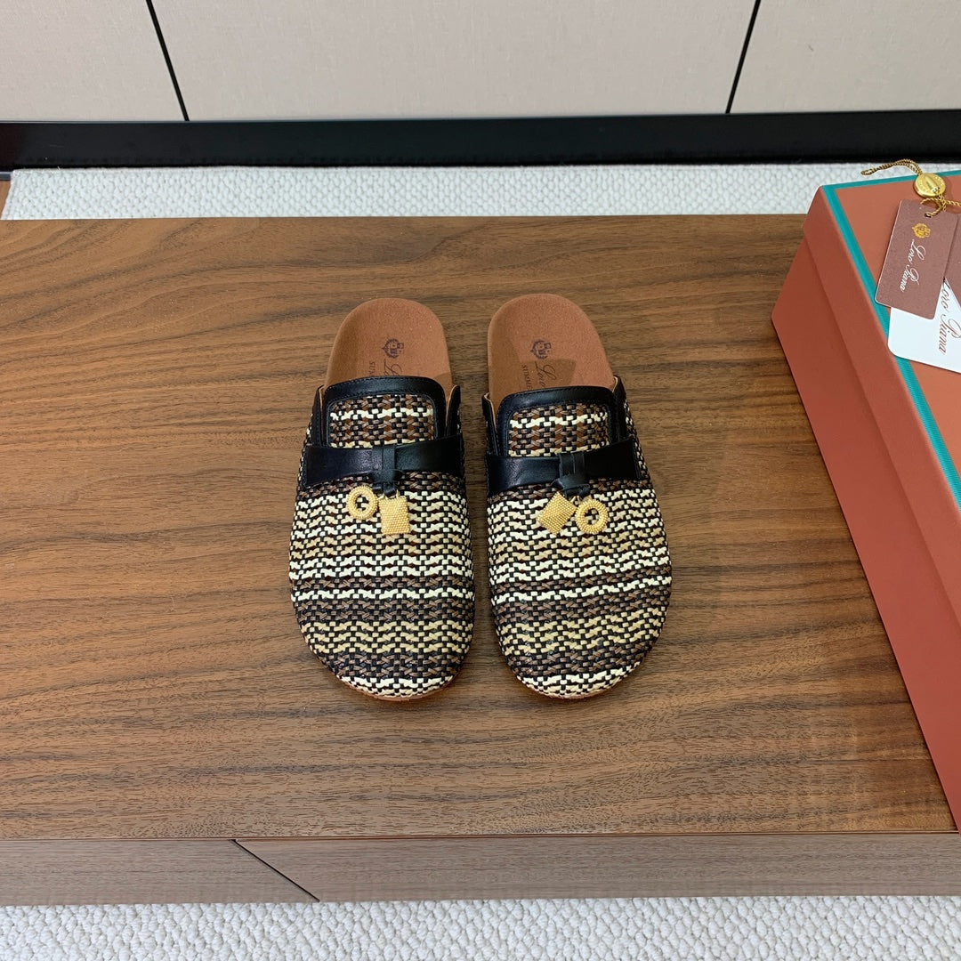 LP Birkenstock slippers black beige raffia calfskin 386726