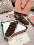 LP Charms Walk Babouche Loafer Bottele Brown Suede With Rabbit Fur Lining 206245