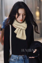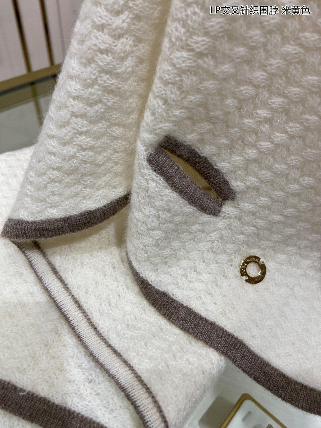LP Scarf 125 CM In Light Beige With Earth Brown Border Cashmere 201759