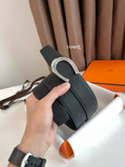 LUCK BELT BUCKLE & REVERSIBLE BLACK LEATHER STRAP 38MM SILVER HARDWARE
