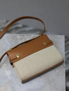 MANHATTAN MINI 19 IN WHITE CANVAS AND BROWN LAMBSKIN GOLD BUCKLE