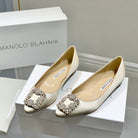 Manolo Diamond Buckle Pumps Beige Silk 327500