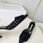 Manolo Mules Latest Checkerboard Black Fabric Leather 528010