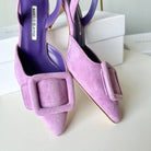 Manolo Slingback 7cm Purple Suede Leather Bottom 451206