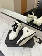 MID-TOP SNEAKERS IN WHITE AND BLACK TRIM PERFORATED LAMBSKIN