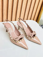 Rockstud Bow Slingback Rose Cannelle Calfskin With Matching Studs