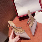 Rockstud Slingback Ballerina Flats Rose Cannelle Leather Cross Straps