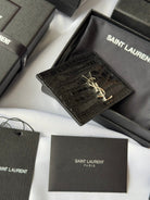 YSL Card Holder 10cm Wallet Black Silver Crocodile Leather 240554