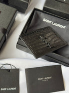 YSL Card Holder 10cm Wallet Full Black Crocodile Leather 240552